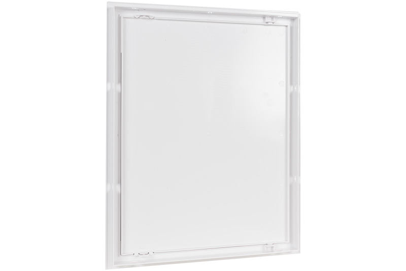 Glatt verarbeitete Inspektionsluke aus Kunststoff, die in verschiedenen Amessungen erhältlich ist. Einfach zu montieren und ideal für die Nachbearbeitung. Einfach zu öffnen und zu schließen durch Drücken auf die Rückseite der Luke.